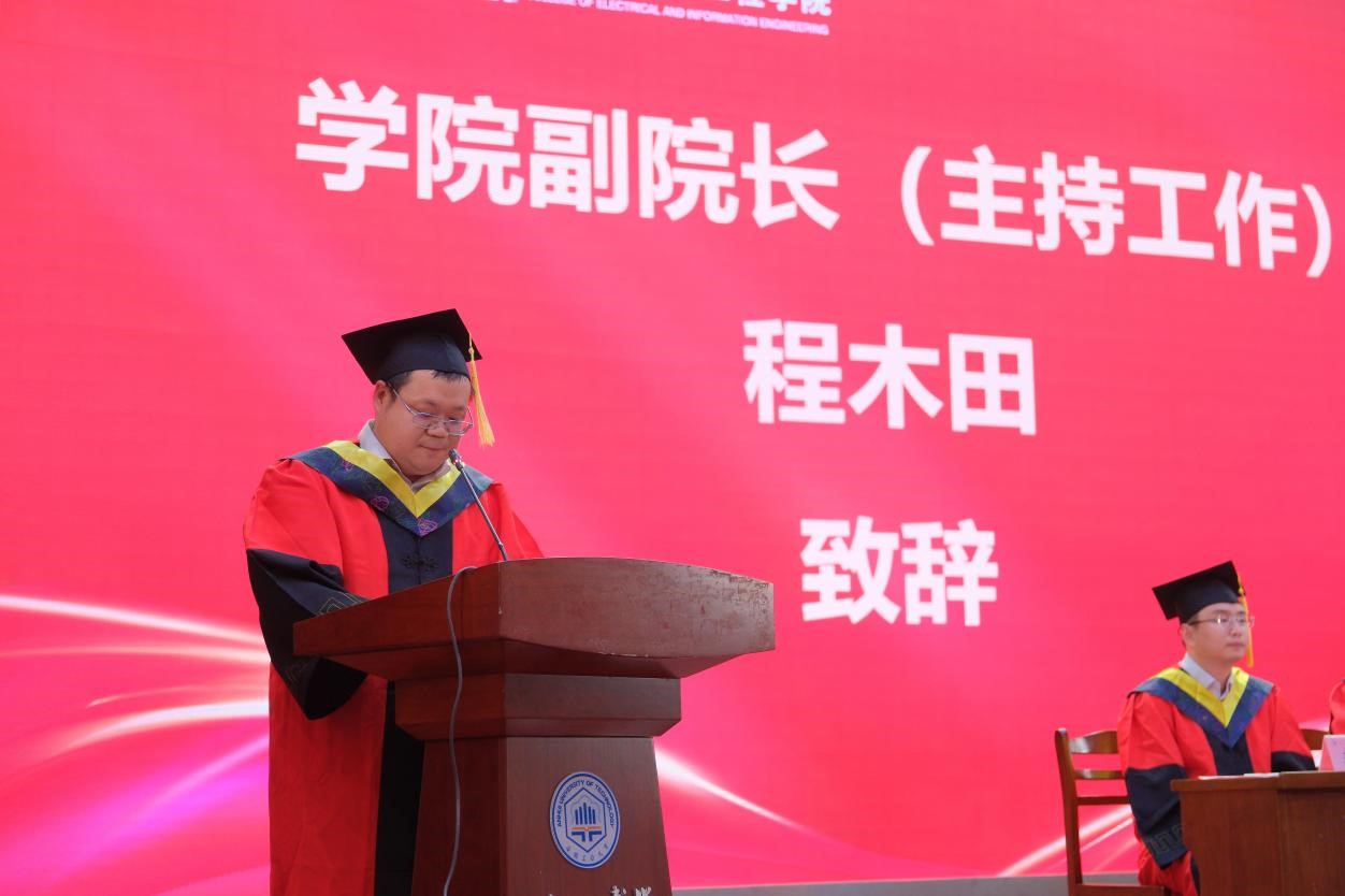 欢送会暨学位授予仪式在庄严雄壮的国歌声中拉开序幕。副院长(主持工作)程木田代表学院向顺利完成学业的毕业生表示祝贺,向悉心培养学生的老师、支持鼓励学生的同学与亲友致以谢意和敬意。他简要回顾了近年来学校、学院建设和发展取得的显著成就,肯定了2025届毕业生拼搏奋斗取得的成绩和荣誉。他指出,在民族复兴的关键节点和人工智能、能源革命重塑时代的背景下,工大学子肩负重任。他勉励同学们牢记“精工博学、厚德敏行”的校训精神,并提出三点殷切希望:希望同学们筑牢信仰之基,在新征程中践行初心使命。深刻领会习近平总书记嘱托,将个人科研方向与国家战略需求紧密结合,深研真理、扎根实践,以实际行动回答“强国建设,青年何为”的时代之问;希望同学们勇攀创新之峰,以硬核实力服务新质生产力。聚焦国家重大需求,守专业之本、拓融合之界,敢做“揭榜挂帅”先锋;秉持终身学习,锤炼能力才干,弘扬创新精神,在突破关键核心技术中锻造大国重器;希望同学们永葆奋斗之姿,在中国式现代化征程挺膺担当。胸怀“功成必定有我”之志,践行“强国有我”誓言;选择扎根基层一线、攻关前沿,在担苦担难中磨炼成长,以“螺丝钉”品格擦亮青春底色,于中国式现代化征程中行稳致远。以校训为精神指引,克服浮躁、持之以恒,心中有山海、自信向未来,努力成长为民族复兴的栋梁之才。