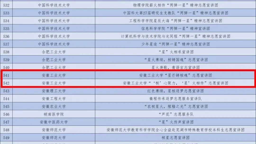 的两支志愿宣讲团——“星芒铸核魂”志愿宣讲团和“‘核’心聚力,‘星’火相传”志愿宣讲团脱颖而出。评选过程中,评审专家对团队的宣讲方案创新性、实践计划可行性等多方面进行了严格考量。这两支团队凭借出色的表现和深厚的实力,成功从层层选拔中突围,成为全国1500支入选团队中的佼佼者。这不仅是团队成员个人能力的体现,更彰显了学院在传承和弘扬“两弹一星”精神方面的坚定决心和积极贡献,为学校在思政教育和志愿服务领域增添了浓墨重彩的一笔。
