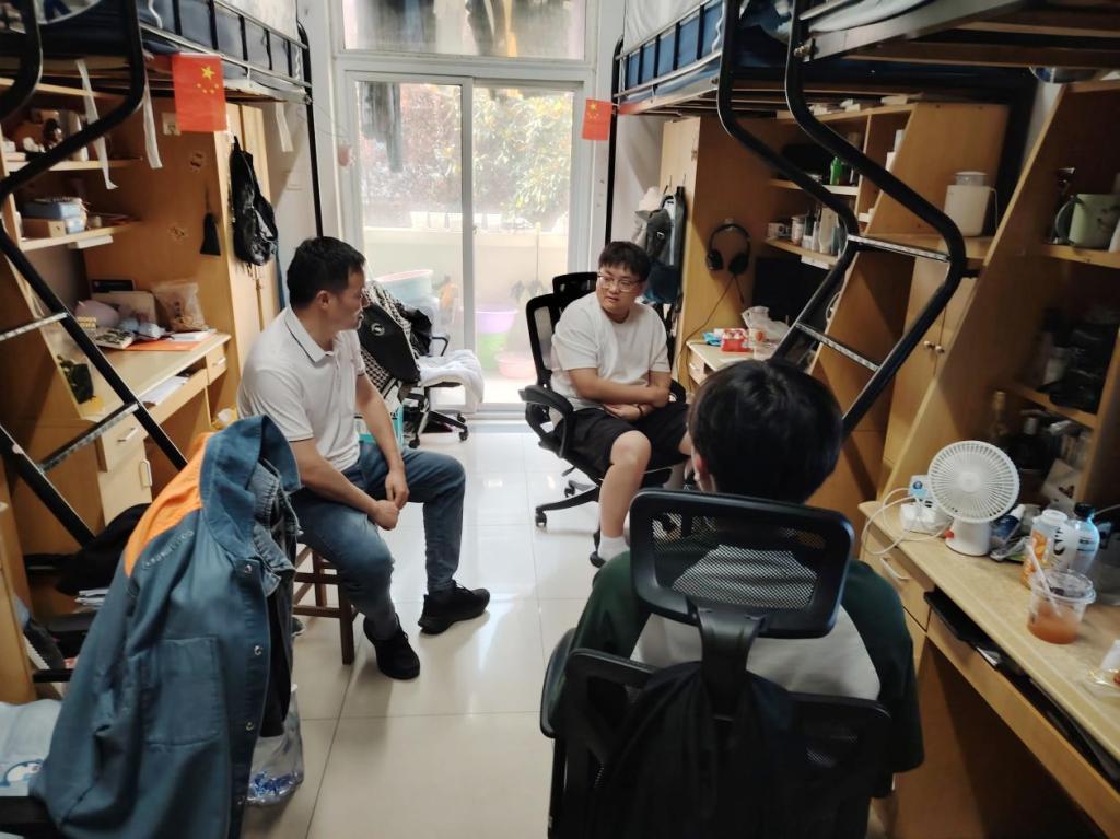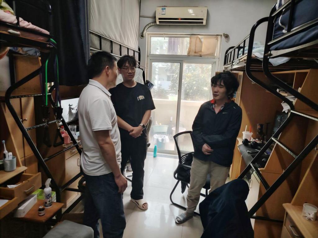 为深化育人实效,营造风清气正的考试环境,精准掌握学生近期的学习生活动态,近日,学院党委副书记、纪委书记、副院长孔洋波率领本科生与研究生各年级辅导员深入学生宿舍,看望慰问备考学子,关切询问学习生活,面对面给予关怀指导。