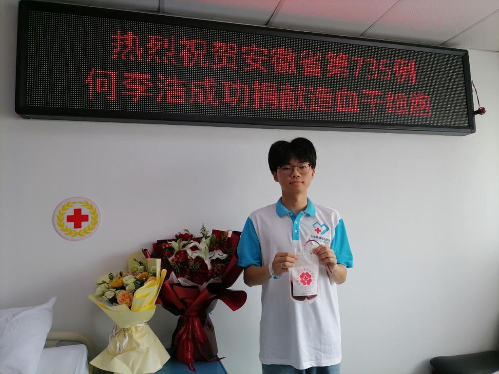 今年2月25日,刚开学第10天,何李浩突然接到市红十字会工作人员的电话,告知他与一名身患白血病的小男孩配型成功,希望能够得到他的造血干细胞捐献。通话结束后,何李浩的第一反应是这会不会是一种新型骗局?学校常态化地开展反诈防骗宣传教育,让他立即联系辅导员报告核实,同时也和学校上一位捐献的学长了解情况。何李浩确定事情的真实性,同时还了解到此次配型成功的概率是几十万分之一,这让何李浩突然意识到捐献造血干细胞是两条平行生命轨迹的交汇。在征得家人理解和支持后,何李浩坚定地选择捐献。经过捐前体检、身体锻炼、合理饮食、规律作息,于4月11日上午11点30分完成造血干细胞的捐献。学校对何李浩捐献的爱心和善举高度重视并予以大力支持。捐献当天,学院党委副书记、纪委书记、副院长孔洋波和辅导员第一时间专程前往看望和慰问。