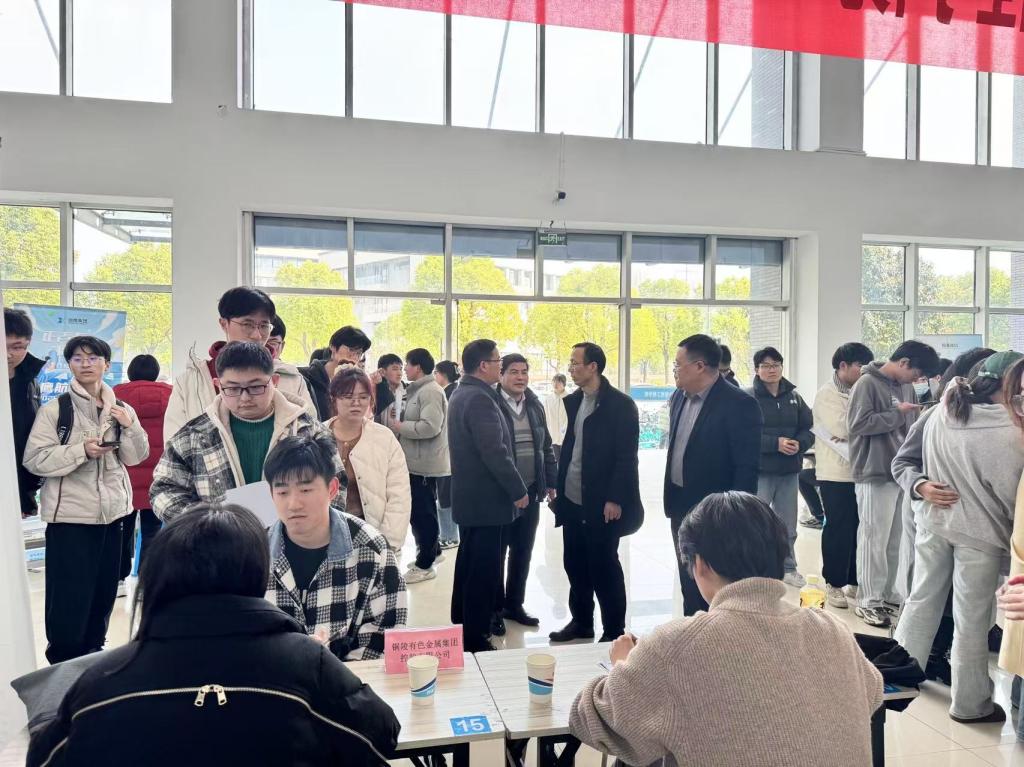 本次专业化就业市场,依托校院两级访企拓岗促就业专项行动,前期充分挖掘单位和岗位资源,成功邀请到铜陵有色金属集团、中冶宝钢技术、安徽环新集团等12家优质单位走进学院的专业化就业市场,提供涵盖电气、自动化、机械、计算机、化学、市场营销、企业管理等专业领域的优质岗位200余个。招聘会的现场设置企业宣讲区、面试洽谈区、咨询服务区三大功能模块,为用人单位和毕业生精准对接提供优质服务。毕业生们带着求职简历、成绩单和实践证书等材料,在招聘单位前整齐排队,与招聘主管进行交流开展面试,了解企业更多信息,展示自身的学业和实践成绩,期待早日被选录。学工部和学院领导走访招聘单位,看望招聘主管,感谢企业对学校就业工作的大力支持,了解企业的人才需求情况、毕业生的应聘情况以及对人才培养的建议;同时与毕业生进行亲切交流,鼓励毕业生把握机会,积极主动就业,结合自己的专业背景,将个人发展融入国家战略需求,在相关行业领域展现过硬本领,服务科技进步和经济社会发展。