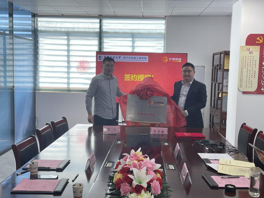 3月25日,学院副院长李飞一行前往安徽芒课教育科技有限公司开展实践教学基地签约暨揭牌仪式。安徽芒课研究院常务副院长张贵敏、青软晶芒副总经理陶羽及各部门负责人出席,学院自动化系副主任费习宏、电子与通信系副主任王康参加签约和授牌对接活动。
