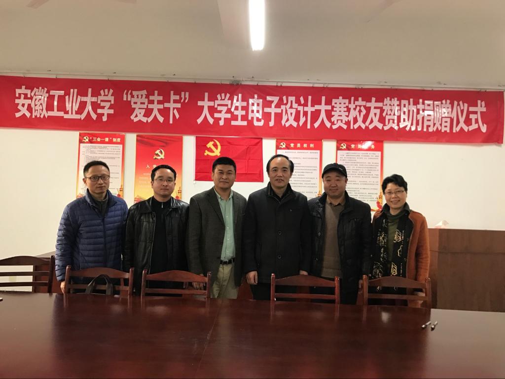 “爱夫卡”大学生电子设计大赛赞助捐赠仪式,深圳市爱夫卡科技有限公司总经理姚勇、学校校友工作处处长单桂峰、探花视频