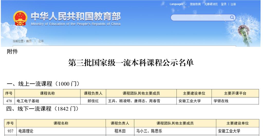 程木田教授团队的《电路理论》课程和郎佳红副教授团队的《电工电子基础》课程,成功入选第三批国家级一流本科课程,其中《电工电子基础》课程是学校获批的唯一一门线上课程,实现了我校线上一流课程的突破。